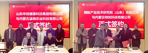 内蒙古特如科技有限公司与领航产业技术研究院(山东)有限公司、内蒙古温商农业科技有限公司与山东中创健康科技集团有限公司,在科技成果转移转化、中草药技术研发等领域达成合作意向,分别签署合作框架协议;共同为“山东省科技服务业协会科技服务驿站(兴安盟)”揭牌。同时,代表团在阿尔山考察期间,阿尔山市人民政府与山东中创健康科技集团有限公司围绕大健康产业发展,签署合作框架协议。