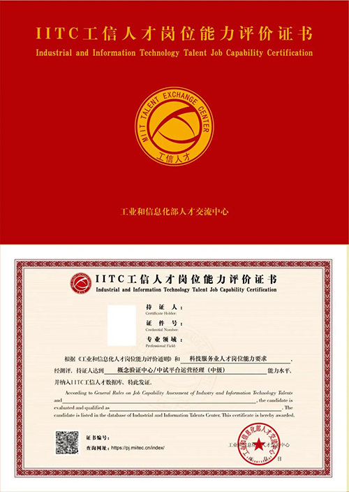 ■ 能力评测采取理论和实践相结合的方式进行,通过能力评测的学员,可获得相应等级的《IITC工信人才岗位能力评价证书》,并纳入IITC工信人才数据库,证书可在工业和信息化部人才交流中心网站查询。