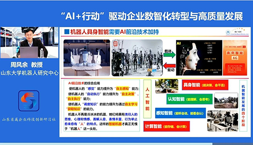 12月5日,“山东科技创新云讲堂·创享视界”专栏第十三期开讲。本期课程邀请国家重点研发计划项目首席科学家,山东大学机器人研究中心教授、博士生导师周风余围绕“‘AI+行动’驱动企业数智化转型与高质量发展”进行了解读。